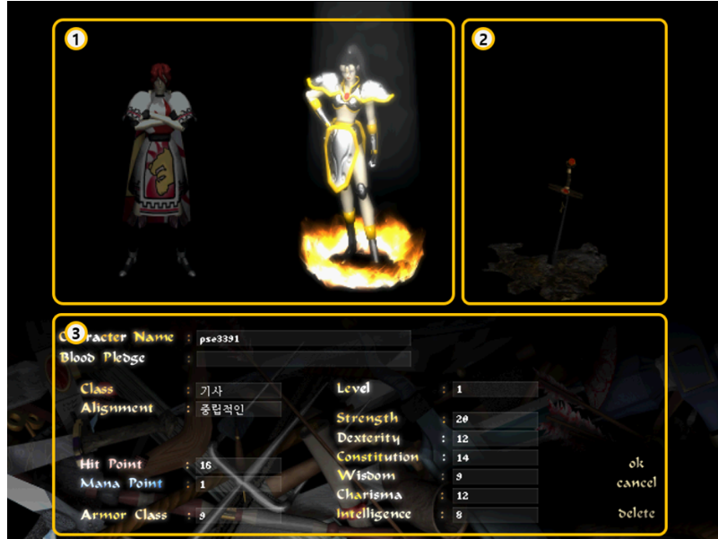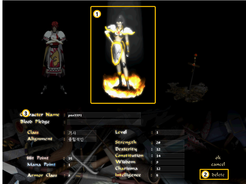 [리니지 클래식] ☆캐릭터 상세 정보☆ 캐릭터 생성 및 삭제 방법, 기본 조작 방식을 안내해 드립니다.리니지 클래식 초보자를 위한 캐릭터 생성 및 삭제 방법, 기본 조작 방식을 안내해 드립니다. 게임정보는 NCER, NCER에서 알려드리는 리니지 클래식 게임소식 입니다. 이 답변은 AI가 생성한 정보입니다. 실제 게임 내용과 다를 수 있으며, 정확한 정보는 반드시 공식 채널에서 확인해주세요. 작성 기준일 : 2026.02.07 ● 캐릭터 생성 <리니지 클래식>에서는 군주, 기사, 요정, 마법사 4종의 클래스를 선택하여 캐릭터를 만들 수 있다. 각 클래스는 어떻게 스탯을 분배했느냐에 따라 고유한 특성을 가지게 된다. * 서버 선택 리니지 클래식은 다양한 서버가 존재하며, 자신이 원하는 서버로 접속하여 게임을 이용할 수 있다. 리니지를 실행 후 팝업되는 이용자 동의서를 동의해야 서버를 선택할 수 있다. * 캐릭터 선택 화면 퍼플에서 로그인 한 후 리니지를 선택하면 업데이트 여부를 체크한 후 게임 실행이 가능하다. 리니지 클래식이 실행된 후, 메인 화면에서 서버를 선택하면 캐릭터 선택화면으로 진입한다. 아래의 사진은 캐릭터를 2개 생성한 상태로, 만약 처음 리니지 클래식을 시작했다면 모든 슬롯이 비어 있다. ① 기존 캐릭터: 기존에 생성한 캐릭터이다. 이 캐릭터를 더블 클릭하거나, 선택한 후 화면 우측아래에 있는 [OK] 버튼을 클릭하면 게임을 시작한다. ② 캐릭터 슬롯: 캐릭터를 생성할 수 있는 슬롯. 이곳을 클릭하면 캐릭터 생성 화면으로 이동한다. ③ 캐릭터 정보: 캐릭터를 선택하면 캐릭터명, 혈맹, 클래스, 레벨 등 정보를 확인할 수 있다. * 캐릭터 생성 화면 캐릭터 선택 화면에서 캐릭터 슬롯을 선택하면 캐릭터 생성 화면으로 넘어간다. 캐릭터 생성은 캐릭터의 클래스 선택과 캐릭터의 베이스 스탯 설정의 두가지 단계를 거치게 된다 ① 클래스: 화면 우측에 있는 각 클래스의 아이콘을 클릭하면 해당 클래스를 선택할 수 있다. 아이콘은 좌측 상단부터 군주, 기사, 요정, 마법사를 의미한다. ② 클래스 성별: 각 성별에 해당하는 아이콘을 클릭하면 성별을 선택할 수 있다. ③ 클래스 능력 선택: 클래스와 성별을 선택한 후에는 주어진 보너스 포인트를 6개의 스탯에 분배하여 캐릭터의 능력을 결정할 수 있다. 가운데 주사위 버튼을 클릭하면 각 클래스별로 셋팅된 스탯 샘플 값이 순차적으로 적용된다. ④ 캐릭터명: 캐릭터의 이름을 입력하는 곳으로, 한글 6글자(18byte), 영문 12글자(12byte)까지 가능하다. 단, 같은 서버 내에 이미 존재하는 이름은 사용할 수 없다. * 캐릭터 삭제 ① 캐릭터 선택 화면에서 삭제하고자 하는 캐릭터를 선택한다. ② 우측 화면 하단의 Delete 버튼을 클릭한다. ③ 31레벨 미만 캐릭터는 삭제 버튼 클릭 시, 바로 삭제가 가능하지만, 31레벨 이상의 캐릭터를 삭제하기 위해서는 7일간의 시간이 소요된다. 혈맹에 가입되어 있는 경우, 캐릭터 삭제가 불가능하다. ④ 삭제 대기 기간 중에는 취소가 가능하며, 삭제가 완료되면 인벤토리 내 모든 아이템이 함께 삭제된다. ● 기본 조작 방식 설명 기본적인 캐릭터 조작 및 이동을 안내한다. * 캐릭터 이동 및 전투 조작 캐릭터의 조작은 마우스 또는 키보드를 사용하여 할 수 있다. [마우스 조작 방식] ① 이동: 이동하고자 하는 위치/대상을 마우스로 좌클릭하여 캐릭터를 움직일 수 있다 ② 몬스터 처치: 공격하고자 하는 몬스터 위에 마우스 커서 오버 시 마우스 커서는 검 또는 화살표 모양으로 변한다. 이때 마우스를 좌 클릭하면 공격이 시작된다. ③ 자동 공격: 공격할 대상에 마우스 좌클릭을 유지한 채 커서를 드래그하면 연속 공격을 하게 된다. 공격 대상이 사망하면 자동 공격은 종료된다. ④ 마법 공격: 공격 마법 클릭 또는 단축키를 누르고 몬스터를 클릭하면 마법이 발동한다. ⑤ 술자 버프: 버프 계열의 경우 단축키를 두 번 연속으로 누르면 마법이 자신에게 발동한다. [단축키] 단축키를 통해 리니지 클래식의 기본 시스템을 편리하게 사용할 수 있다.