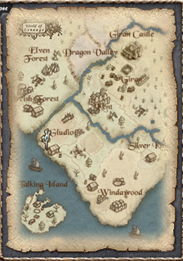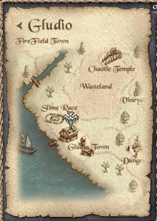 (참고) 필드맵 전환 화면. 글루딘 마을 텔레포터 스티브 앞 위치 중 ■ 월드맵