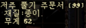 아이템 확인• 소개 - 미확인 아이템의 진짜 이름과 능력을 알 수 있다. • 이용 방법 ① 인벤토리에서 확인 주문서 더블 클릭 (아이콘 클릭 시 돋보기 모양으로 마우스 커서 변경) ② 확인할 아이템을 클릭 ③ 아이템 정보 확인 아이템 축복/저주• 소개 - 아이템 특성은 축복/일반/저주로 구분된다. • 특성에 따른 특징