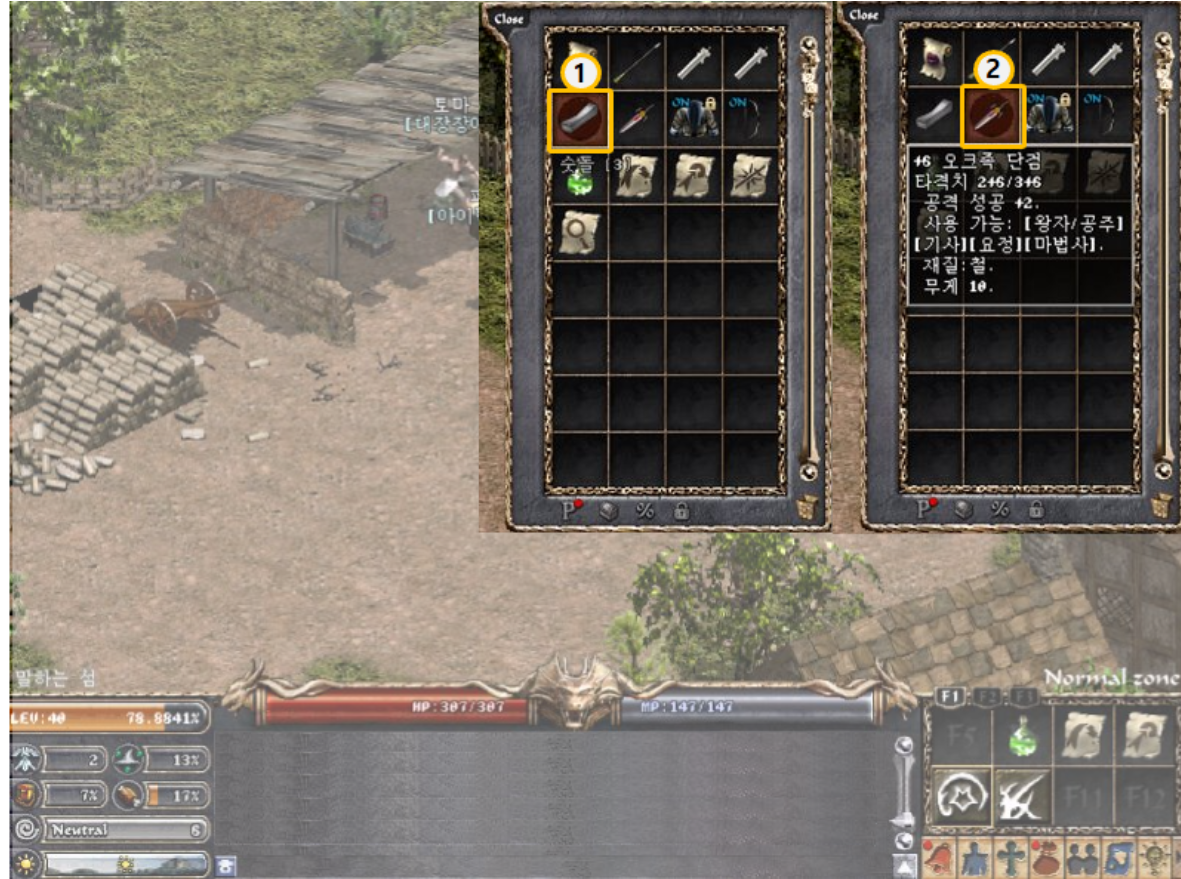 [리니지 클래식] 손상된 아이템, 수리할 수 있습니다!!손상된 무기와 방어구는 몇몇 마을에 있는 대장장이를 통해 수리하거나 숫돌 또는 오리하루콘으로 손상도를 회복시킬 수 있습니다. 아이템을 이용한 수리 방법, NPC를 이용한 수 방법을 확인해 보세요! 게임정보는 NCER, NCER에서 알려드리는 리니지 클래식 게임소식 입니다. 이 답변은 AI가 생성한 정보입니다. 실제 게임 내용과 다를 수 있으며, 정확한 정보는 반드시 공식 채널에서 확인해주세요. 작성 기준일 : 2026.02.07 아이템 수리 • 소개 - 손상된 아이템을 수리하는 시스템. - 돌 골렘이나 터틀 드래곤, 브롭처럼 일정 확률로 무기와 방어구를 손상시키는 몬스터들이 존재한다. 무기가 손상되면 공격 시 나오는 칼 아이콘이 붉게 표시되며 대미지가 감소한다. - 이렇게 손상된 무기와 방어구는 몇몇 마을에 있는 대장장이를 통해 수리하거나 숫돌 또는 오리하루콘으로 손상도를 회복시킬 수 있다. • 이용 방법 1. 아이템을 이용한 수리 방법 ② 마우스 커서가 돋보기 형태로 변경되면 손상된 아이템 수리하여 손상도 수리 ※ 재료 1개당 손상도 1 수리 2. NPC를 이용한 수리 방법 ① 마을 내 대장장이를 방문하여 대화창을 통한 수리 진행 ② 아데나를 소모하여 장비 완전 수리 ※ 손상도를 모두 수리하는 것만 가능