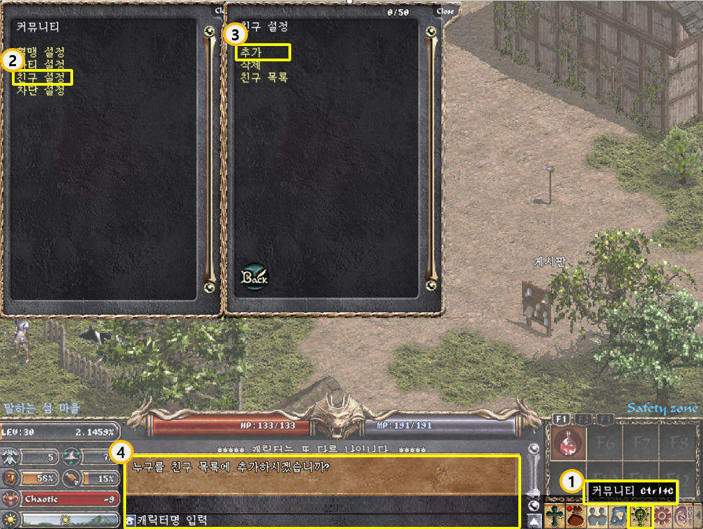 [리니지 클래식] 플레이 중 마음이 맞는 플레이어가 있나요? 친구 추가, 삭제, 차단 추가, 차단 삭제 방법 등 친구 시스템이 있습니다!리니지 클래식 플레이 중 여러 플레이어를 만날 수 있으며, 마음이 맞는 플레이어가 있다면 친구로 등록할 수 있는데요, 친구 추가, 삭제, 차단, 차단 목록 보기 방법에 대해 안내해 드립니다. 게임정보는 NCER, NCER에서 알려드리는 리니지 클래식 게임소식 입니다. 이 답변은 AI가 생성한 정보입니다. 실제 게임 내용과 다를 수 있으며, 정확한 정보는 반드시 공식 채널에서 확인해주세요. 작성 기준일 : 2026.02.07 ● 친구 시스템<리니지 클래식>을 플레이 중에는 여러 플레이어를 만날 수 있으며, 마음이 맞는 플레이어가 있다면 친구로 등록할 수 있다. 친구로 등록한 캐릭터는 친구 옵션 – 친구 목록에 등록되며, 접속 여부를 확인할 수 있다. 친구는 최대 50명까지 등록할 수 있다. • 친구 추가 커뮤니티(Ctrl+C) - 친구 옵션 – 추가 버튼을 클릭한 후 나오는 입력창에 친구로 추가하고 싶은 캐릭터명을 입력한다. "/친구 캐릭터명" 명령어 사용 시 캐릭터명이 친구 목록에 없을 경우에는 자동으로 친구 목록에 추가됩니다. ※ 기타 추가 방법 - 명령어: 채팅창에 “/친구추가 캐릭터명” 입력 후 엔터키 사용. • 친구 삭제 커뮤니티(Ctrl+C) - 친구 설정 – 추가 버튼을 클릭한 후 나오는 입력창에 삭제하고 싶은 친구의 캐릭터명을 입력한다. "/친구 캐릭터명" 명령어 사용 시 캐릭터명이 친구 목록에 있을 경우에는 자동으로 친구 목록에서 삭제됩니다. ※ 기타 삭제 방법 - 명령어: 채팅창에 “/친구삭제 캐릭터명” 입력 후 엔터키 사용. - 친구 목록 직접 삭제: 친구 목록에서 캐릭터명 선택 후 키보드 delete 키 눌러 삭제. • 친구 목록 커뮤니티(Ctrl+C) - 친구 옵션 – 친구 목록 버튼을 클릭하면 등록된 친구의 접속 여부를 확인할 수 있다. 접속 상태의 친구는 초록색으로, 비접속 상태인 친구는 회색으로 표시된다. ※ 기타 친구 목록 확인 방법 - 명령어: 채팅창에 “/친구” 입력 후 엔터키 사용 ● 차단 시스템<리니지 클래식>을 플레이하면서 다른 플레이어와 불가피하게 마찰을 빚을 경우가 있다. 이런 경우 차단 기능을 사용하여 임의의 플레이어가 보내는 메시지를 거부할 수 있다. 차단 등록한 캐릭터는 차단 옵션 – 차단 목록에 등록되며, 접속 여부를 확인할 수 있다. 차단은 최대 100명까지 등록할 수 있다. • 차단 추가 커뮤니티(Ctrl+C) - 차단 옵션 – 추가 버튼을 클릭한 후 나오는 입력창에 차단하고 싶은 캐릭터명을 입력한다. "/차단 캐릭터명" 명령어 사용 시 차단 목록에 없는 캐릭터는 자동으로 차단 목록에 등록됩니다. ※ 기타 차단 방법 - 명령어: 채팅창에 “/차단 캐릭터명” 입력 후 엔터키 사용. • 차단 삭제 커뮤니티(Ctrl+C) - 차단 옵션 – 삭제 버튼을 클릭한 후 나오는 입력창에 차단하고 싶은 캐릭터명을 입력한다. "/차단 캐릭터명" 명령어 사용 시 이미 차단된 캐릭터는 자동으로 차단 목록에 해제됩니다. ※ 기타 차단 방법 - 차단 목록 직접 삭제: 차단 목록에서 캐릭터명 선택 후 키보드 delete 키 눌러 삭제. - 명령어: 채팅창에 “/차단 캐릭터명” 입력 후 엔터키 사용. • 차단 목록 커뮤니티(Ctrl+C) - 차단 옵션 – 목록 버튼을 클릭하면 등록된 유저의 접속 여부를 확인할 수 있다. 접속 상태의 유저는 빨간색으로, 비접속 상태인 유저는 회색으로 표시된다. ※ 기타 차단 목록 확인 방법 - 명령어: 채팅창에 “/차단” 입력 후 엔터키 사용.