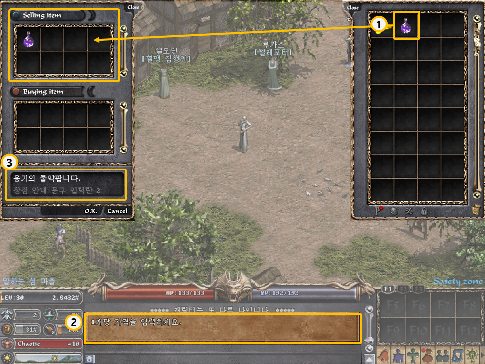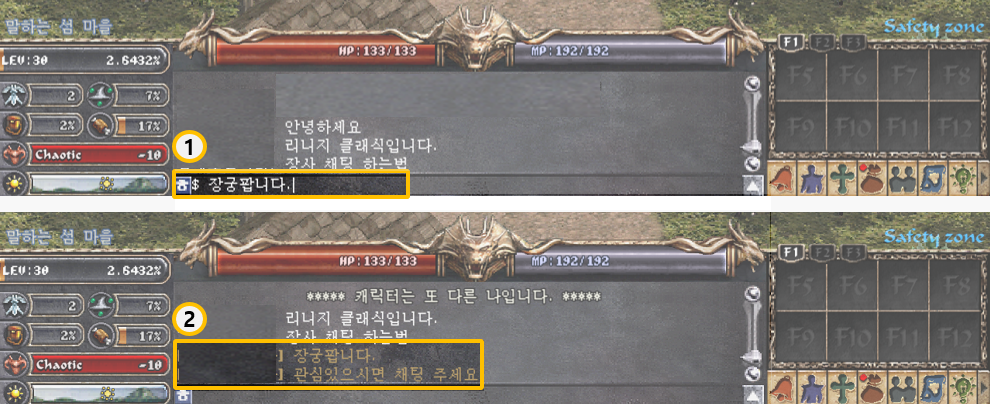 [리니지 클래식] 아이템을 자유롭게 사고 팔 수 있는 기능은? 개인 상점 이용 안내해 드립니다.개인 상점을 개설하여 아이템을 자유롭게 사고 팔 수 있으며 마을에서만 개설이 가능합니다. 게임정보는 NCER, NCER에서 알려드리는 리니지 클래식 게임소식 입니다. 이 답변은 AI가 생성한 정보입니다. 실제 게임 내용과 다를 수 있으며, 정확한 정보는 반드시 공식 채널에서 확인해주세요. 작성 기준일 : 2026.02.07 개인 상점 유저는 마을에서 직접 상점을 열어 아이템을 자유롭게 사고 팔 수 있다. • 개인 상점 개설 ① 채팅창에 “/상점”을 입력하면 안내창과 함께 상점 개설 가능 범위가 노출된다. ② 상점 개설이 가능한 위치는 초록색, 불가능한 위치는 빨간색으로 표시된다. ③ 위치를 정한 후 Yes 버튼 클릭 시, 상점과 인벤토리 창이 팝업된다. ※ 개인 상점은 마을에서만 개설 가능하다. • 개인 상점 아이템 등록 ① 인벤토리에서 판매할 아이템을 개인상점 창으로 드래그하여 등록한다. (등록된 아이템은 창 밖으로 드래그하거나 더블 클릭 시 취소가능하다) ② 아이템 등록 후 채팅창 판매 가격과 수량을 입력한다. ③ 상점 안내 문구 입력란에 홍보 문구를 작성 후 OK 버튼을 클릭한다. ※ 상점 안내 문구를 입력하지 않더라도 상점 개설이 가능하다. • 아이템 등록 특징 - 한 번에 판매/구매 가능한 아이템은 최대 8종류이다. - 아이템 가격은 최대 1천만 아데나까지 설정 가능하다. - 판매 아이템 수량은 보유 수량을 초과할 수 없다. - 아이템 당 최대 400개까지 입력 가능하다. 장사 채팅 • 장사 채팅 - 자신이 판매하는 물건을 홍보하고 싶을 때 사용하며, 메시지는 갈색으로 노출된다. - 30레벨 이상의 캐릭터만 작성 가능하며, 채팅창에 “$” 누른 후 원하는 메시지를 입력하면 된다. - 게임 옵션(ctrl+v) 또는 명령어 “/장사채팅 켬 또는 끔”으로 장사 채팅 on/off 설정 가능하다. • 채팅 매크로 - 채팅창에 다양한 광고 메시지를 지속적으로 반복 노출할 수 있는 기능이다. - 매크로 사용 중 다른 채팅을 할 수 있으나, 채팅이 금지된 상태에서는 사용이 불가능하다. ① 채팅창에 “/매크로” 입력한다. ② 팝업되는 창에 원하는 홍보 문구를 입력한다. (영문 40자, 한글 20자) ③ 문구 입력 후 play 버튼 클릭 시 입력된 문구가 5초 간격으로 반복 노출된다. ※ 문구 입력 후 'Play All'을 누르면 모든 메시지가 순서대로 반복 출력된다 • 필터 기능 - 장사 필터는 광고 문구와 장사 채팅 중 특정 키워드가 포함된 메시지만 확인할 수 있도록 하는 기능이다. - 채팅창에 "/장사필터 [키워드]" 입력한다. 키워드 사이에 공백을 사용하여 여러 키워드를 입력 가능하다. - 필터 해제 방식은 채팅창에 "/장사필터"를 재입력하거나, 설정(Ctrl+v) – 게임 설정 - 장사글 전체보기 꺼짐 설정하면 된다.
