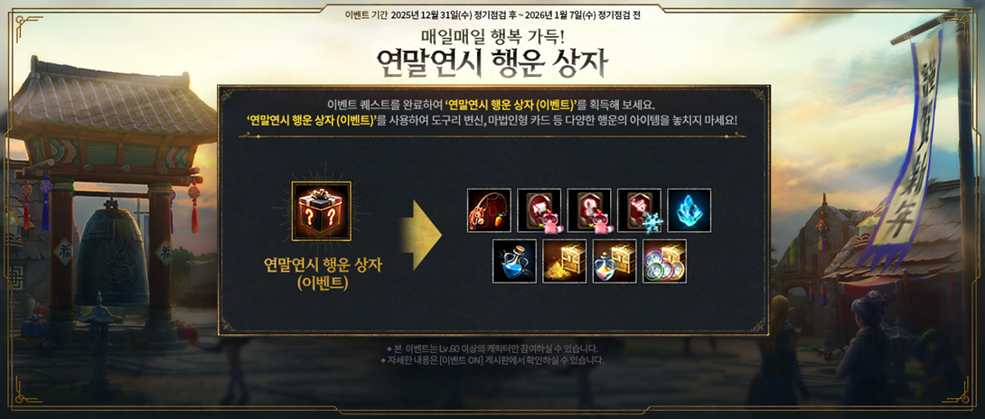 - 2026년 1월 7일 정기점검 이후, 이벤트 아이템 ‘연말연시 행운 상자 (이벤트)’는 삭제됩니다.
