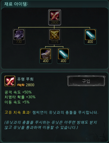 오직 공속에만 투자한 템입니다. 공격 속도를 70% 증가시켜주고 독특한 지속 효과를 가지는데요..