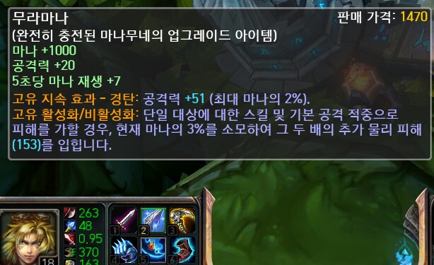 8350 광전사,피바라기,몰락,곡괭이,롱소드+125골 흡낫,얼건,도마벰,쿨감신,무라마나!! 18랩 기준 공격력160 공속60% 생흡18% 공격력61 쿨감35% 마나1500 주문력30 방어력70 생흡10% 몰락검 상대체력5%댐지 풀마나시 무라마나추댐 153공격력 (현제마나6%뎀) 도마벰 40고정피해 , 체젠,마젠+ 얼건 스킬다음 평타 or q추뎀 125%기본공격력