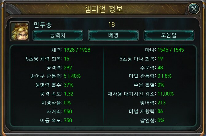 조건 1 룬 공격력9 방어력9 성장저항9 흡혈2공격1(일반이즈,파랑이즈동일) 2특성 (파랑,일반 동일)