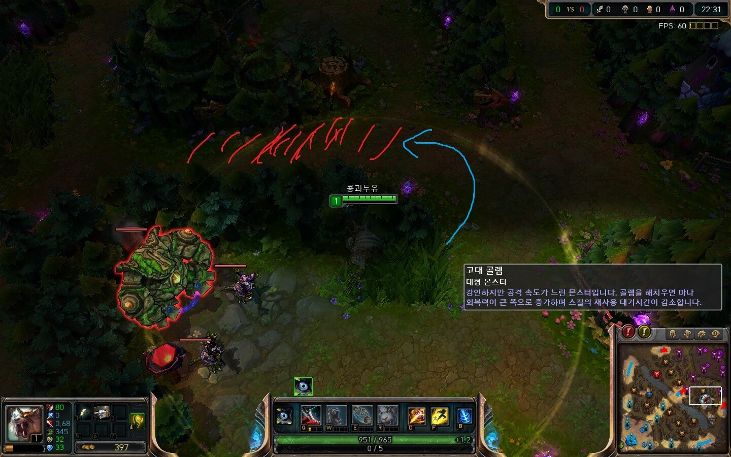 수많은 버그로 인해 많은 논란을 불러오던 챔피언 입니다. 라이엇에서 렝가의 OP성 때문에 수없이 많은 너프를 진행하였지만, 그때마다 렝가는 관짝을 어떻게든 다시 부수고 나와 살아남았습니다. 렝가를 가장 잘 활용하기 위해서는 '보이지 않는 포식자' 를 잘 활용해야 합니다. 렝가는 부쉬에 숨어있을 때 이 글에서는 바로 그 패시브 '보이지 않는 포식자'를 어떻게 하면 효율적으로 활용할 수 있는가에 대한 팁을 제시하고자 합니다. 2. 정글에서의 패시브 활용 이를 이용하면 추노나 카정등에 아주 유용하게 사용할 수 있습니다. 우선 렝가의 패시브에 대해서 중요한 사실을 알아야 하는데 바로 렝가의 패시브는 보이는 것보다 더 멀리 도약할 수 있다는 사실입니다. ![]() 사진으로 설명드리겠습니다. 원래 렝가는 부쉬에 있을때 저렇게 '노란 원' 범위 안에 있는 적에게 도약할 수 있습니다. 그러나 실제로는 부쉬에서 벗어나더라도 아주 잠시 동안은 도약을 사용할 수 있습니다. 따라서 실제 도약 가능 범위는 '렝가가 부쉬에서 걸어나간 범위 + 노란 원의 도약 범위'가 되어 사진처럼 빨간색으로 칠한 범위까지 도약이 가능합니다. 이를 활용하면 생각보다 먼 범위를 도약할 수 있게 됩니다 ① 블루 지역 ![]() ![]() 사진으로 보시면 블루 뒤쪽 2개의 부쉬에서는 노란색 원의 반경에 블루 골렘이 닿지를 않습니다. 하지만 아까도 말했듯이 실제 도약가능 반경은 보이는 것보다 더 길기 때문에 와드를 박아 놓은 상태라면 저기 두 군데의 부쉬에서 블루 골렘을 타고 점프를 하는게 가능합니다. 카정등을 갈 때 꿀이겠죠? ㅎㅎ ② 레이스 및 골렘 지역 ![]() ![]() ![]() 정글 렝가를 한번이라도 해보신 분들은 다 아시겠지만 저렇게 부쉬에서 레이스나 작골에게로 바로 점프가 가능합니다 이를 통해서 정글 동선등을 크게 줄일 수가 있습니다. 또한 레드 부쉬에서 작골에 와드를 박으면 저렇게 작골한테로 도약이 가능한데 적에게서 도망칠때 정말 유용합니다 ㅎㅎ 3. 2단 도약의 활용 탑라인이나 봇라인 부쉬처럼 여러 개의 부쉬가 가까이 붙어 있는 경우 시야만 확보되있다면 2단 도약이 가능합니다. 즉, 다른 부쉬에 있는 적에게 한번 도약을 한 뒤, 곧바로 그 부쉬에서 또다른 적에게 한번 더 도약을 하는 겁니다. 탑 부쉬나 봇 부쉬에서 패시브 활용은 그 쓰임새가 무궁무진하여 다 설명하기는 힘들지만 정글에서도 이렇게 2단 도약이 가능한 곳이 있습니다. ![]() ![]() 첫번째 사진을 보시면 만약 빨간색 지점에 와드가 있고 거기에 상대방이 있다고 가정합시다 그리고 파란색 지점에 딸피인 적이 도망치고 있다고 합시다 그러면 사진상에서 렝가가 있는 지점에서 빨간색 지점에 있는 적에게 도약을 한 후 곧바로 파란색 지점에 있는 적에게 도약을 하여 딸피인 적을 죽이고 킬을 먹을 수 있습니다. ^오^ 비슷하게 2번째 사진에서도 그런게 가능합니다 2번째 사진을 보시면 카직스가 부쉬에 숨어있고 부쉬가 와드로 밝혀져 있는 상태입니다. 사진상에서 렝가가 있는 위치에서 카직스까지는 노란 원의 범위가 닿지 않지만, 역시 실제 보이는 것보다 도약거리는 길기 때문에 저 부쉬에서 카직스에게로 도약이 가능합니다. 따라서 2번째 사진에서 오른쪽에 파란색 지점에 딸피인 적이 있다면 빨간색 지점에 있는 카직스를 타고서 곧바로 파란색 지점에 있는 적에게 도약을 할 수가 있습니다. 사실 생각해보니 이런 환경이 나올 일은 별로 없을거 같네요 ㅠㅠ 4. 패시브를 활용한 추노 렝가의 패시브는 추노를 할 때 유용합니다. 하지만 궁이 없는 이상 적이 시야에 보이지 않는다면 도약을 할 수가 없기 때문에 와드를 통해 적의 위치를 확인하는 것이 중요합니다. ![]() 현재 렝가가 딸피인 카직스를 추노하는 상황이고 카직스가 '파란색 경로'를 따라 도망가서 현재 '빨간색으로 칠한 곳' 어딘가에 있다고 생각해봅시다. 사진상에서 카직스는 시야에서 벗어나 있기 때문에 렝가는 카직스에게 도약을 할 수 없습니다. 그렇기 때문에 순간적으로 와드를 박아서 카직스의 위치를 확인하는 것이 필요합니다. ![]() 이렇게 순간적으로 와드를 박아서 도약을 하면 손쉽게 적에게 따라붙을 수 있습니다. ㅎㅎ 이런 블루 부쉬 말고도 벽을 넘어서 부쉬도약을 할 수 있는 장소가 여러 곳이 있는데 대표적으로 드래곤 근처 부쉬가 있습니다. ![]() ![]() 지금처럼 와드를 통해 시야를 밝혀 놓으면 현재 렝가 위치에서 벽을 넘어 카직스에게 도약하는 것이 가능합니다. 그리고 사진으로는 못 찍었는데 첫번째 사진같은게 드래곤 아래 삼거리 부쉬에서도 가능합니다. 소환사의 협곡은 대칭적인 맵이니 바론 근처, 탑 부쉬 등에서도 비슷한 플레이가 가능하겠죠? ㅎㅎ 5. 뼈이빨 목걸이의 효과 렝가만이 살 수 있는 특수한 아이템입니다. 뼈이빨 목걸이는 킬이나 어시스트를 올릴 때마다 스택이 하나씩 올라가는데, 스택이 쌓이면서 렝가는 특수한 효과를 얻게 됩니다. 그중에서 스택을 9스택까지 쌓으면 생기는 효과가 있는데, 바로 '부쉬 도약거리 150 증가' 효과 입니다. 사실 스택을 모으는게 쉬운일이 아니라서 별로 쓸일은 없겠지만, 이 도약거리 증가 효과를 활