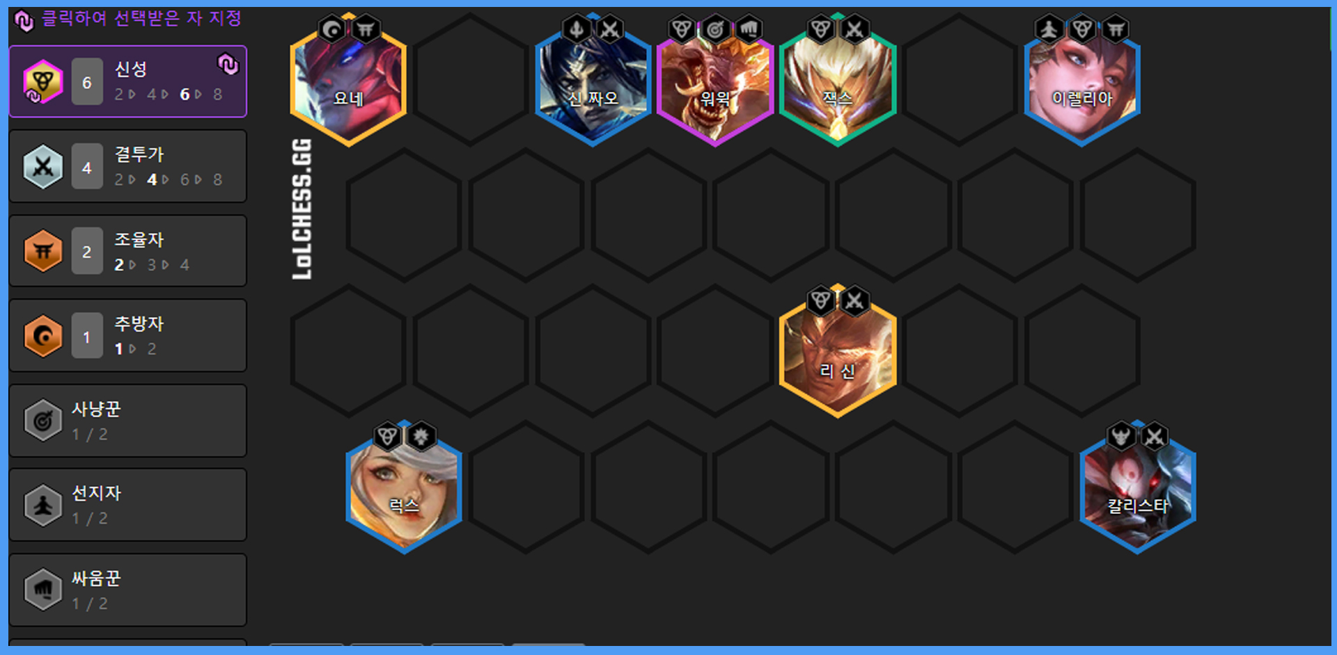 오공 대신 요네가 들어간다면 방 마저를 줄여주고 그 사이에 다른 유닛들이 정리를 하면됩니다! 그래서 워윅이 킬 관여로 다른 유닛을 키워 캐리 하면 됩니다! 그리고 신성의 시너지가 다른 시너지들 보다 템의 의존도가 생각보다 높기때문에 다른 후반 덱들보다 밸류가 엄청 차이 나고 2성, 3성작이 안된다면 고밸류로 바꿔주시는 게 가장 좋습니다.