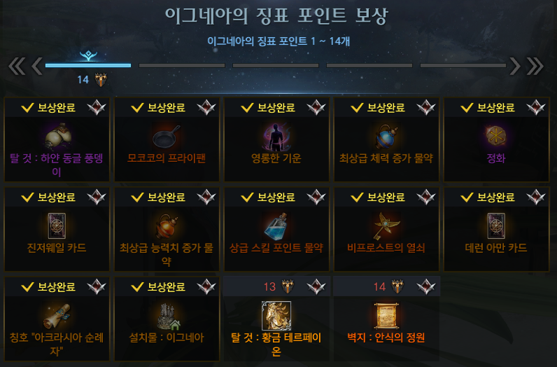 모험의서 100% 달성시 획득하는 이그네스 증표 보상