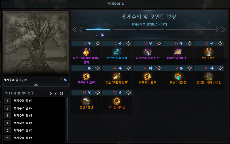 - 6개 보상: 스킬포인트 물약