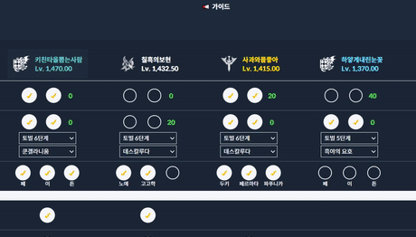 로아 시작한지 얼마 안 됬는데 캐릭이 3개인데도 기억을 못하겠더라구요 그래서 숙제 체크 사이트를 만들었습니다 다른 사이트는 제가 쓰기엔 좀 복잡해서 큰 기능 없이 간단히 만들어봤습니다. 아직 숙제 체크 기능밖에 없어용 히히 많이 부족해서 너무 믿진 마세요..!!! 로아 점검 시간에는 캐릭터 정보를 불러오는 일 (캐릭터 추가 및 수정, 갱신)이 불가합니다! 주소 : https://myloa.kro.kr ![]() 주요 기능으로는