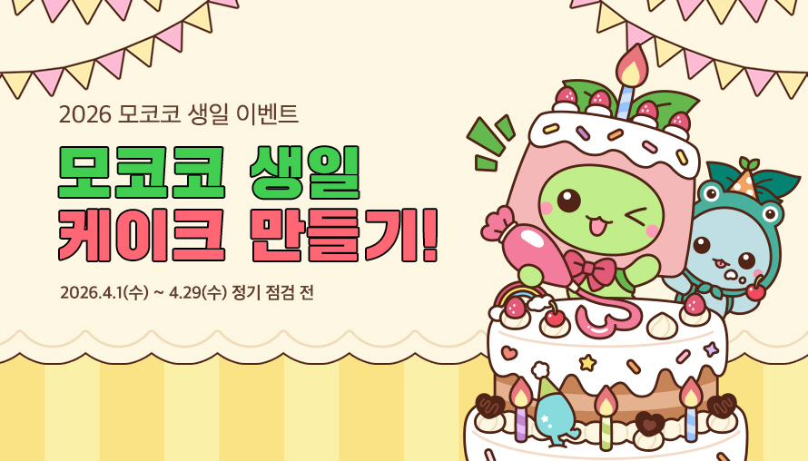 이벤트에 대한 더욱 자세한 사항과 모코코의 깜짝 선물에 대해서는 '모코코 생일 케이크 만들기!' 이벤트 페이지에서 확인하실 수 있습니다.