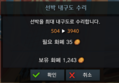 트라곤 뽑은김에 수리비 얼마나 싸졌나 확인![]() 원주민 부락은 저기서 50%정도 더 들어갑니다 내구도 100정도에서 수리시 55주화 들었어요 이정도면 충분히 타고다닐만 하다고 봅니다