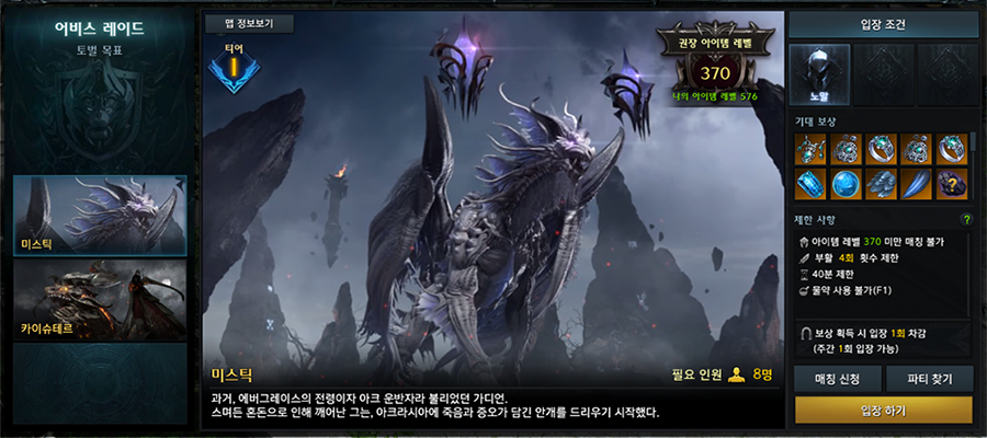 - 달성한 아이템 레벨에 따라 입장 가능한 던전 및 단계가 상승합니다.
