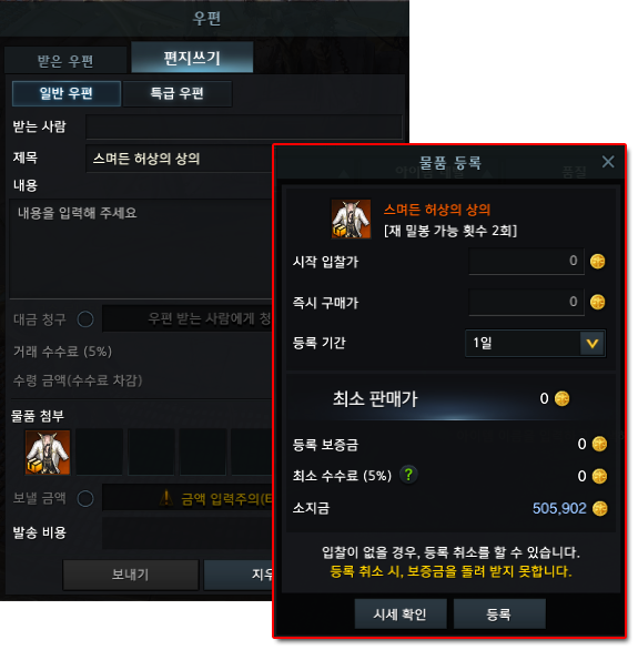 ▲ 밀봉이 완료된 아이템은 자유롭게 거래가 가능합니다.