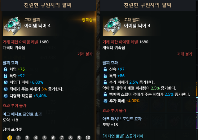 111 음돌난무 팔찌관련 질문있습니다저렇게 두개있는데 악추피 이중옵쪽이 투력은 34점정도 높은데 악마 나오는레이드가 적어서 어느쪽이 좋을지 몰라서 질문하러 왔습니다