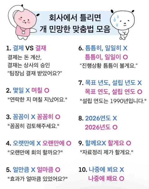 회사에서 틀리면 민망한 맞춤법![]() 그렇다고 합니다 ㄷㄷㄷㄷㄷ