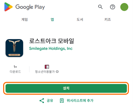 CBT 게임 다운로드 방법 안내안녕하세요, 로스트아크 모바일입니다. 로스트아크 모바일 CBT에 지원해 주신 모험가님께 깊은 감사의 말씀을 드립니다. 본 테스트 참여를 위해 아래 각 플랫폼별 설치 및 실행 방법을 확인하시고 안내에 따라 설치를 진행해 주시기 바랍니다. ■ 안드로이드(AOS) 설치 안내1. Google Play 스토어에서 설치 버튼을 클릭하여 게임을 다운로드 합니다. ※ 현재 앱이 단계적으로 배포되고 있으며, 일부 모험가님께는 반영이 지연될 수 있습니다. 노출되지 않을 경우 잠시 후 다시 시도해 주시기 바랍니다.