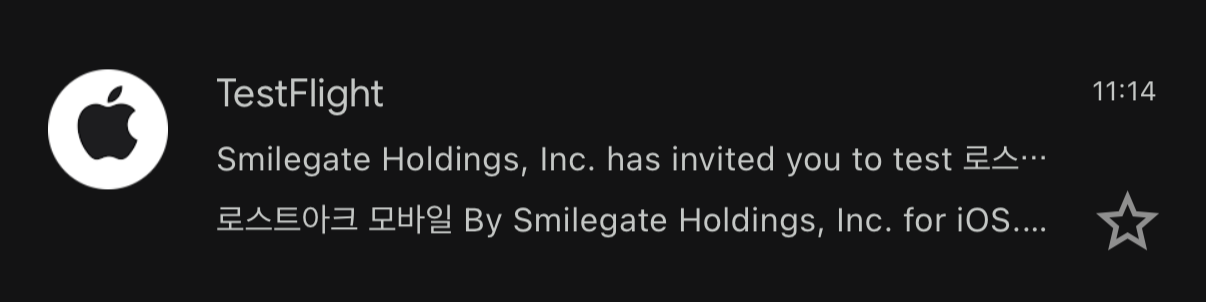 2. CBT 신청 당시 입력한 마켓 계정 이메일로 발송된 Apple TestFlight 초대 메일을 확인해 주세요. ※ 초대 메일을 받지 못하셨다면, 신청 시 기재하신 이메일 주소가 올바른지 아래 링크에서 확인해 주세요.