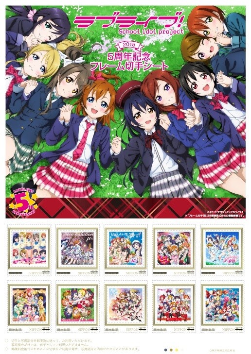 정보글)러브라이브 5주년 기념 우표 판매![]() ![]() ![]() 가격 : 세금 포함 2천엔 세트 구성 : 52엔 우표 10장, A3 특제 대지 1매, 클리 어파일 1매 판매처 : 2014년 12월 28일부터 코믹마켓87 회장 및 도쿄 중앙 우편국에서 선행 판매, 2015년 1월 15일부터 일본 전국의 중앙우편국 및 공식 통판 사이트에서도 판매. <1만 세트 한정>