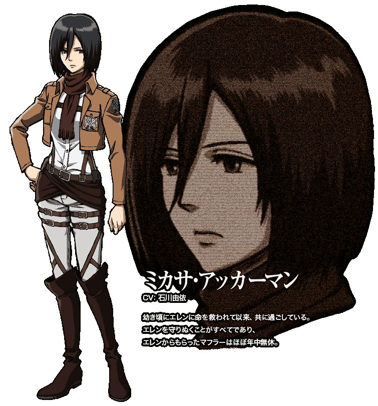 (성우가 생일) 제목 : 진격의 거인 이름 : 미카사 아커만 성우 : 이시카와 유이 (일) / 트리나 니시무라 (미)