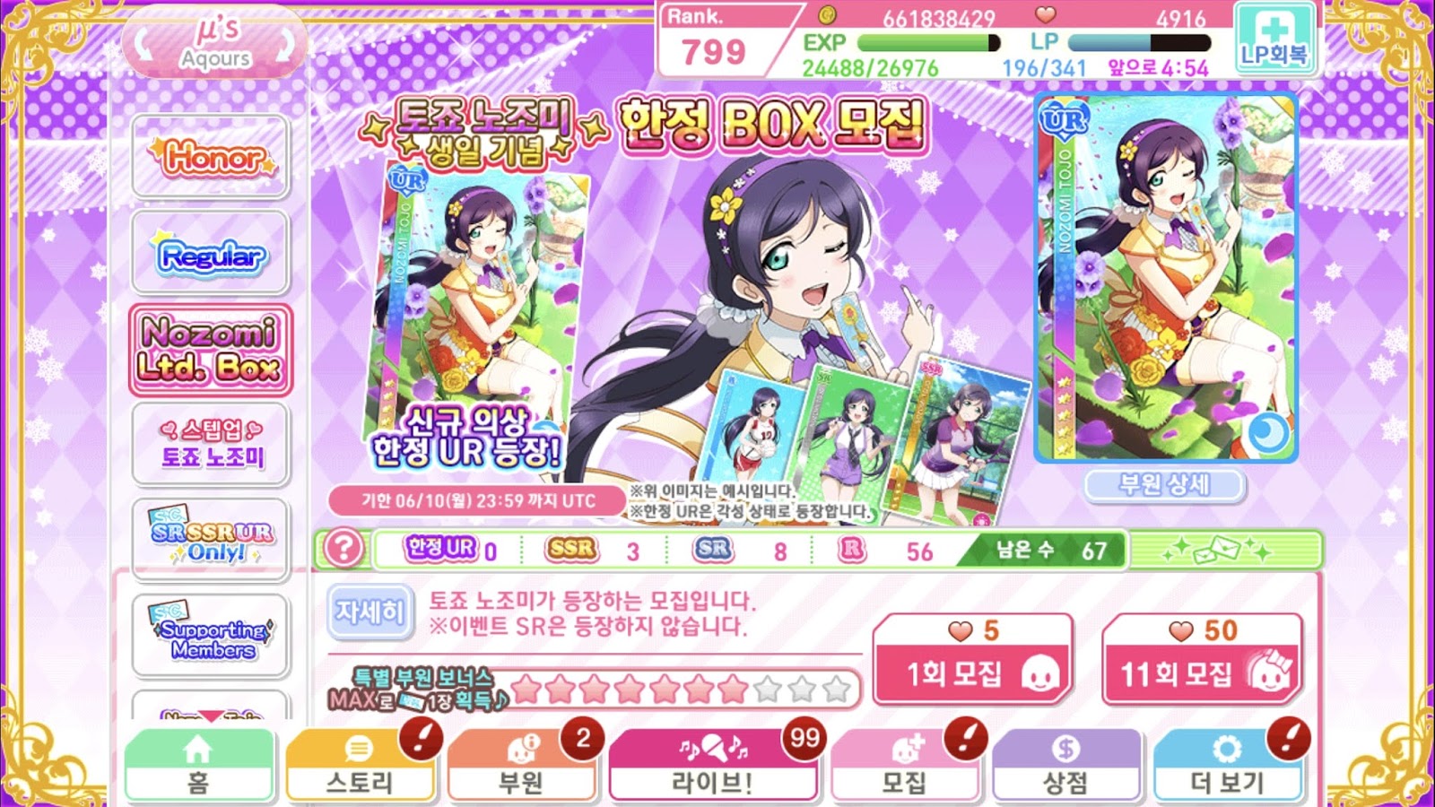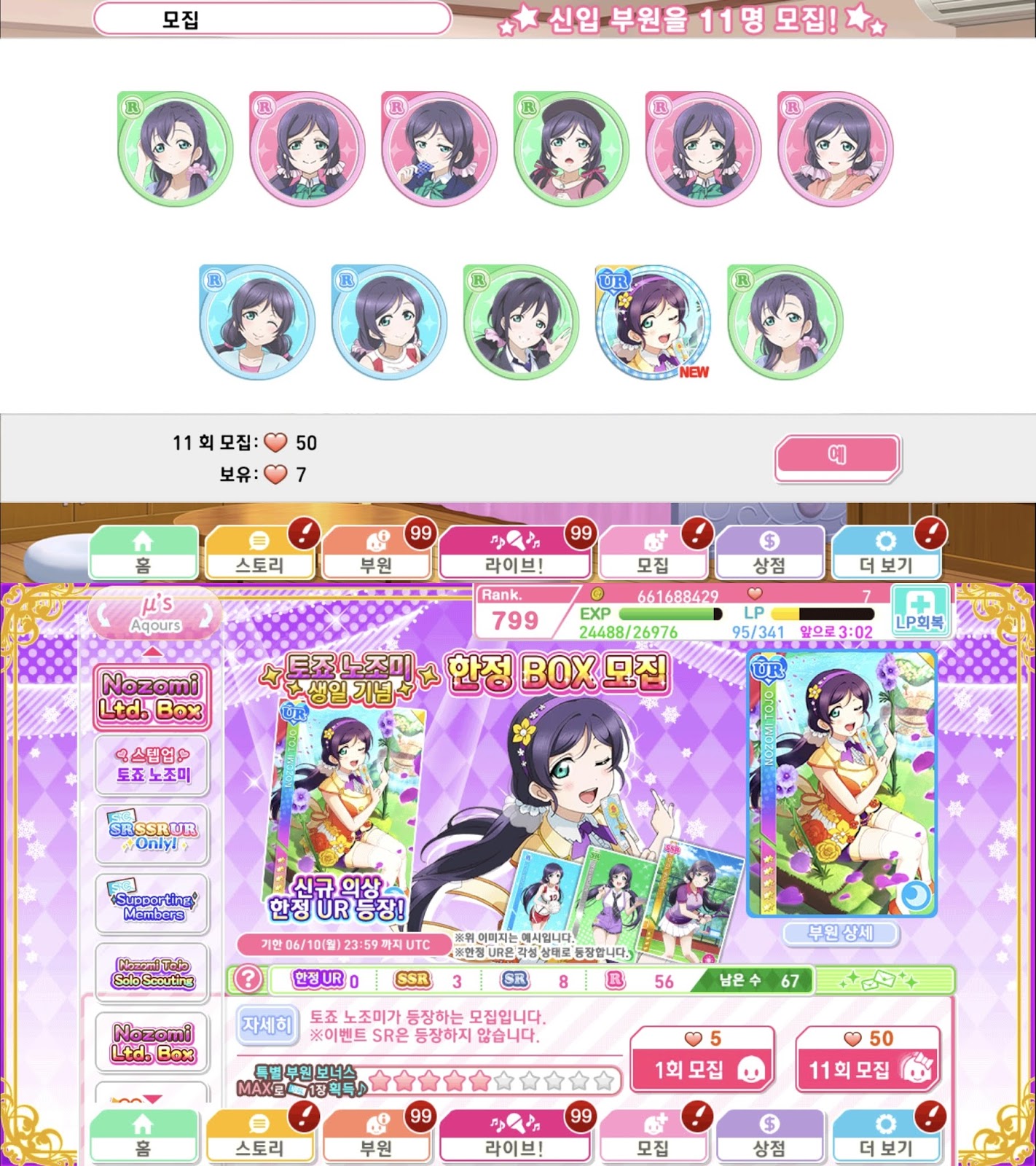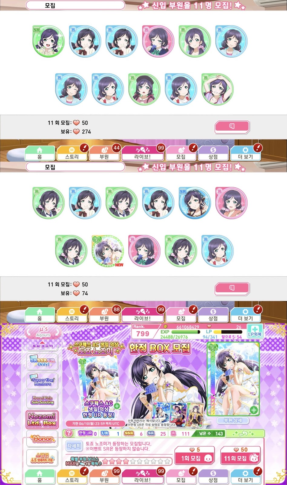(짤37장,56.2MB) 양쿠 노조미생일가챠 정산전 이번에 1차생일울 2장 / 2차생일울 5장 으로 덱편성하는 목표가 있었습니다 정독하기 귀찮으면 쭈욱 내리셔도 됩니다