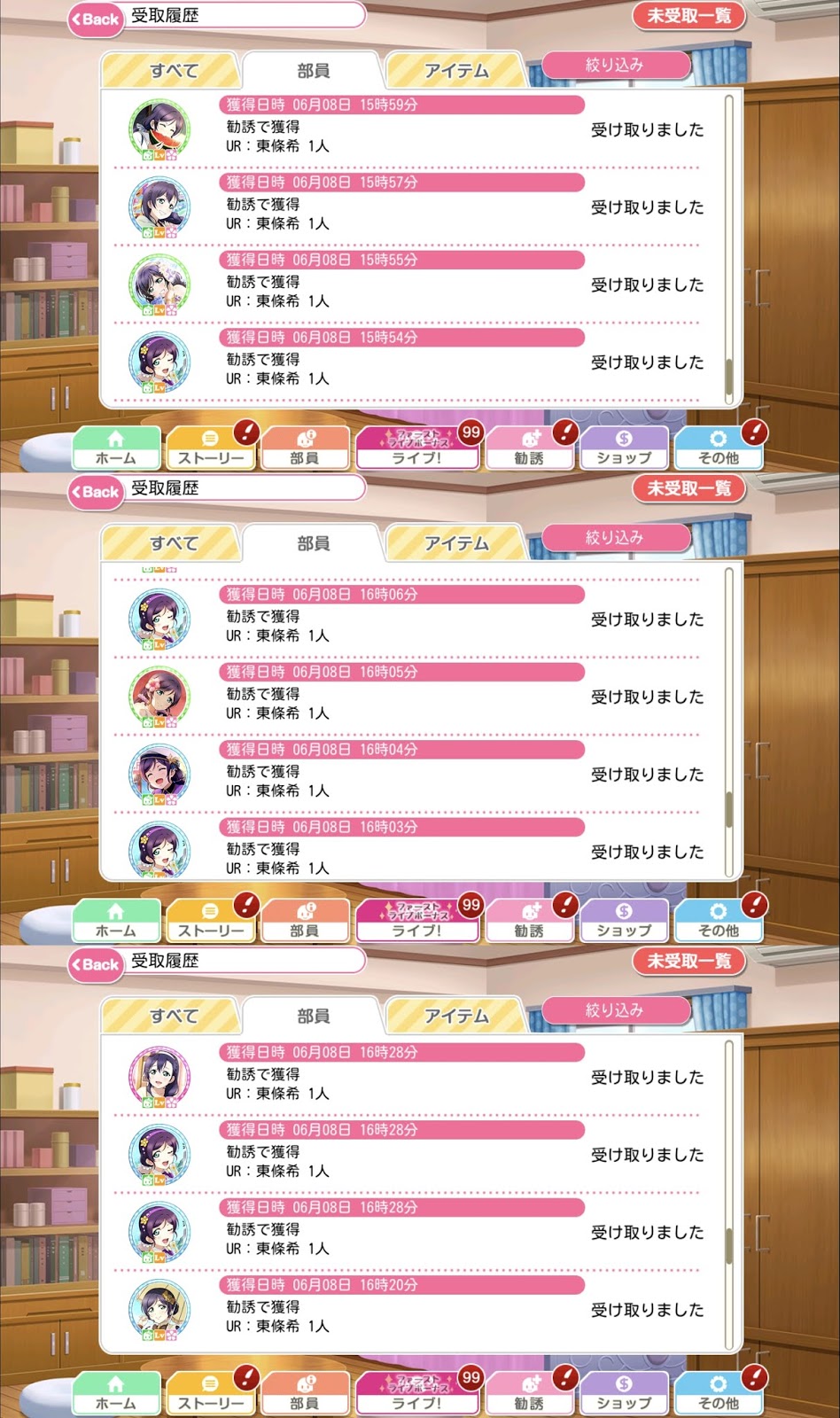 탄생석노조미 도시ROCK 및 수박노조미 추가획득 (보존예정임!)