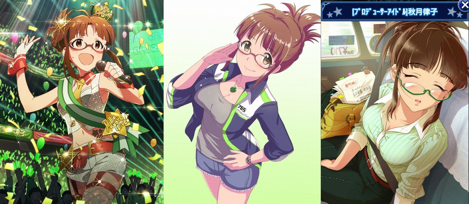(캐릭터가 생일) 제목 : 아이돌 마스터 이름 : 아키즈키 리츠코 (B = 72+13 / W = 57 / H = 85) 성우 : 와카바야시 나오미 이미지 컬러 = 녹색