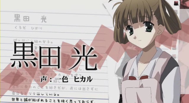 (성우가 생일) 제목 : 스쿨데이즈 이름 : 쿠로다 히카리 성우 : 게임판은 잇시키 히카루, TV애니판은 타나카 료코 명의