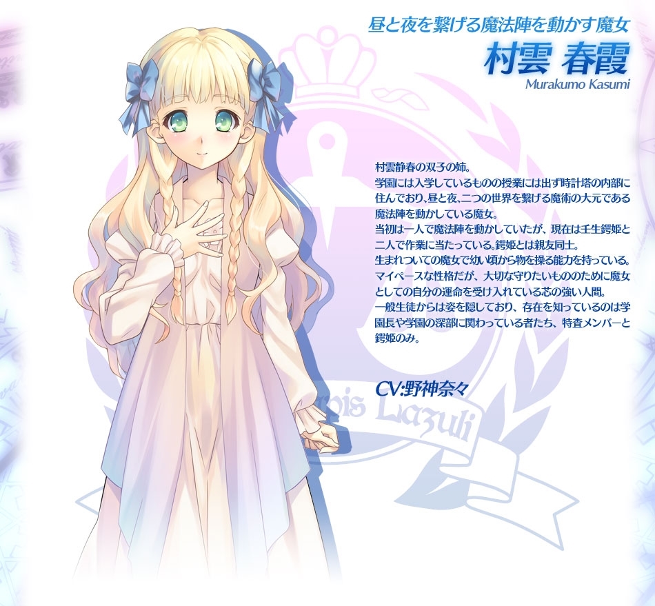 (성우가 생일) 제목 : 시계장치의 레이라인 이름 : 무라쿠모 카스미 성우 : 모토이 에미