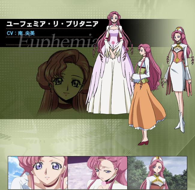 (캐릭터가 생일) 제목 : 코드 기어스 반역의 를르슈 이름 : 유페미아 리 브리타니아 성우 : 미나미 오미 (일) / 미셸 러프 (미)