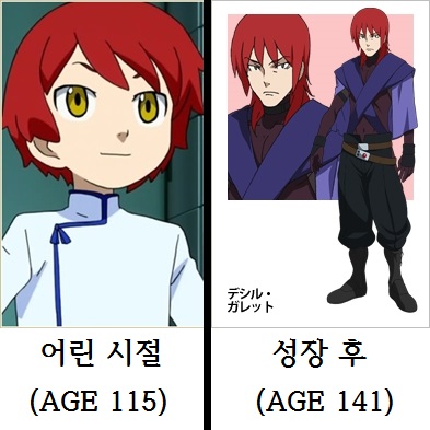 (성우가 생일) 제목 : 기동전사 건담 AGE 이름 : 데실 가레트 성우 : 일 = 타카가키 아야히 (!!!!!!!!) (AGE 115) / 테라시마 타쿠마 (AGE 141) 〓〓〓한 = 윤아영 (AGE 115) 신경선 (AGE 141) 〓〓〓미 = Gloria Ansell (AGE 115) Michael Pizzuto (AGE 141)