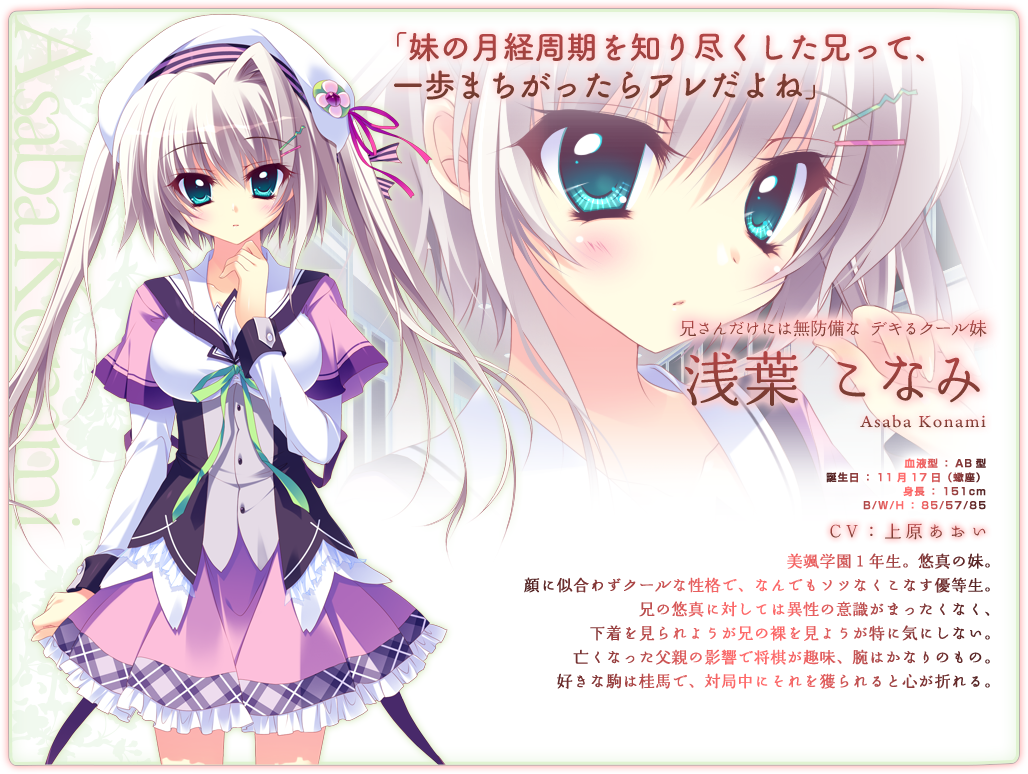 (성우가 생일) 제목 : 여동생 파라다이스! 이름 : 나나세 코하루 성우 : 후카다 아이
