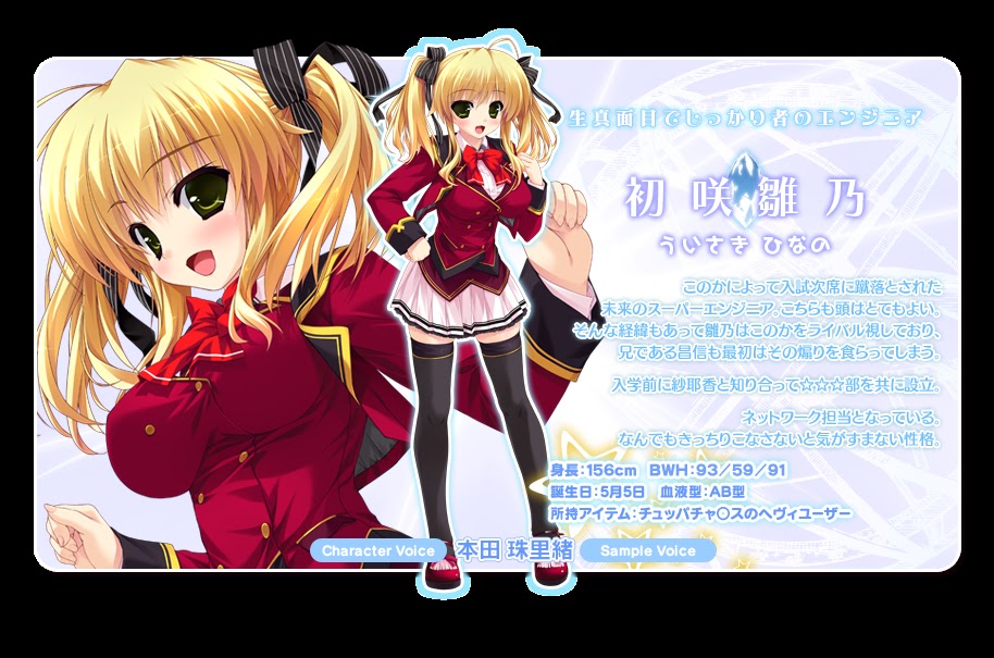 (성우가 생일) 제목 : 하늘색 아일노츠 이름 : 히노미야 코노카 성우 : 후카다 아이