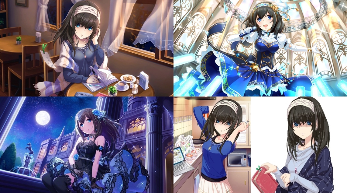 (성우가 생일) 제목 : 아이돌 마스터 신데렐라 걸즈 이름 : 사기사와 후미카 (B = 72+12/W = 54/H =81) 성우 : M.A.O 이미지 컬러 코드 = #3874BB (