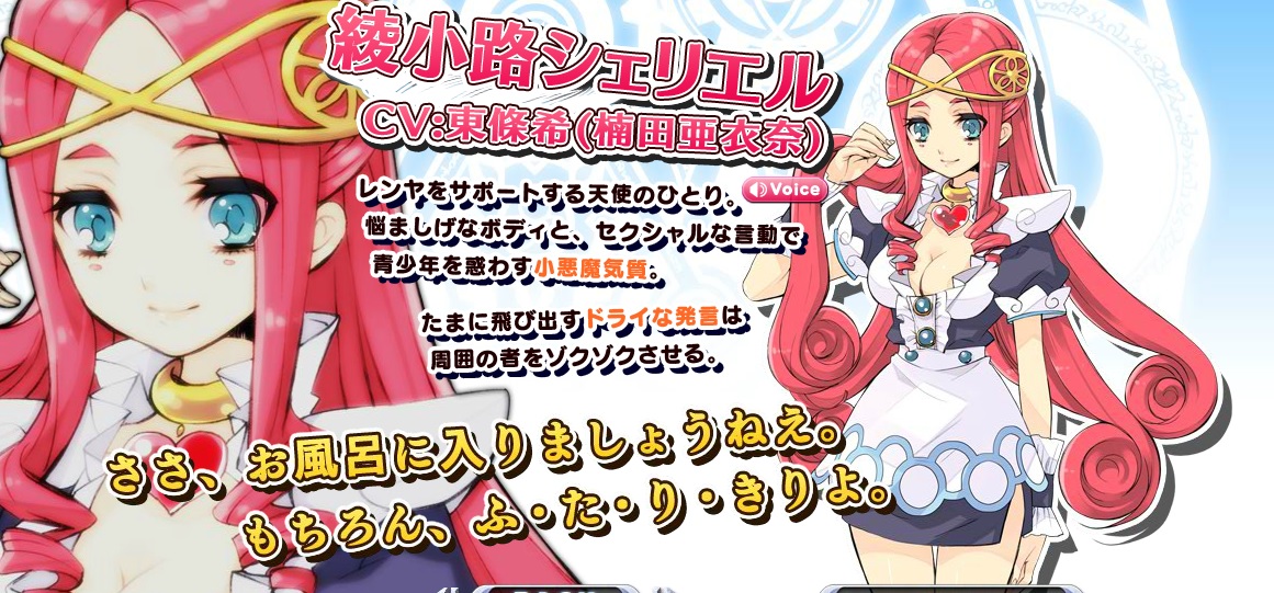 (성우가가 생일) 제목 : 신과 운명 혁명의 패러독스 이름 : 아야노 세리엘 성우 : 쿠스다 아이나 (토죠 노조미 명의로 참여)