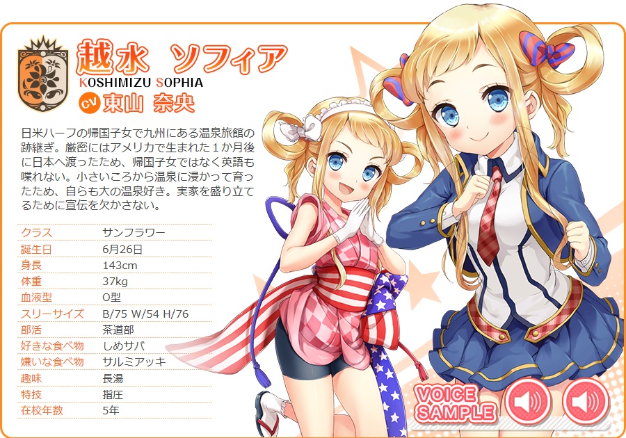 (성우가 생일) 제목 : 그리모어 ~사립 그리모와르 마법학원~~ 이름 : 코시미즈 소피아 성우 : 토야마 나오