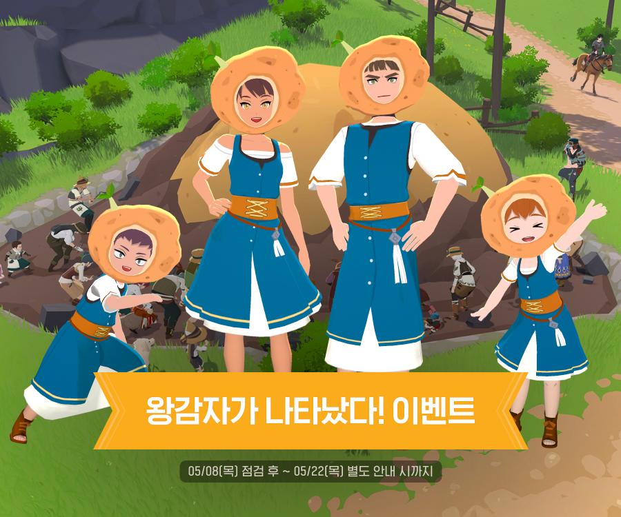 ◼ 이벤트 기간: 2025년 5월 8일(목) 점검 후 ~ 2025년 5월 22일(목) 별도 안내 시 ◼ 이벤트 내용 - 우측 상단 [메뉴(≡)] → [이벤트] → [왕감자가 나타났다!] 탭에서 이벤트를 확인하실 수 있습니다. - 해당 이벤트는 [도전! 왕감자 채집 레이드!] 아르바이트를 진행하여 미션을 달성할 수 있습니다. * [도전! 왕감자 채집 레이드!]는 레벨 24 달성 이후 매주 일요일 마다 아르바이트 메뉴에서 진행할 수 있습니다.