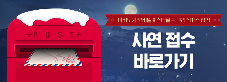 매주 10개의 사연을 선정하여 ‘스타필드 수원’에서 진행되는 마비노기 모바일 크리스마스 팝업 내