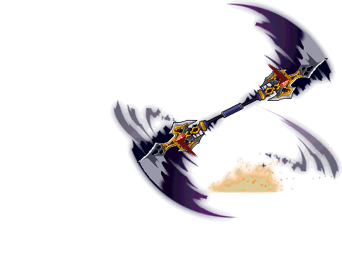 (1: 시전 이펙트, 2: 막타 이펙트) 다크나이트가 어둠의 힘을 받아들인 이후 최초로 어둠의 힘을 빌리지 않은 스킬입니다. KMS와 GMS의 해석이 또 갈리는 부분인데, Calamitous는 '재앙을 초래하는'이라는 뜻이고 Fierce는 '흉포한'이라는 뜻입니다. 단순히 '흉포하다' 라고 표현해놓은 스킬에 더욱 자극적인 작명으로 강력함을 어필하고자 했던 GMS의 의도가 엿보입니다. / 다크니스 오라 / Darkness aura