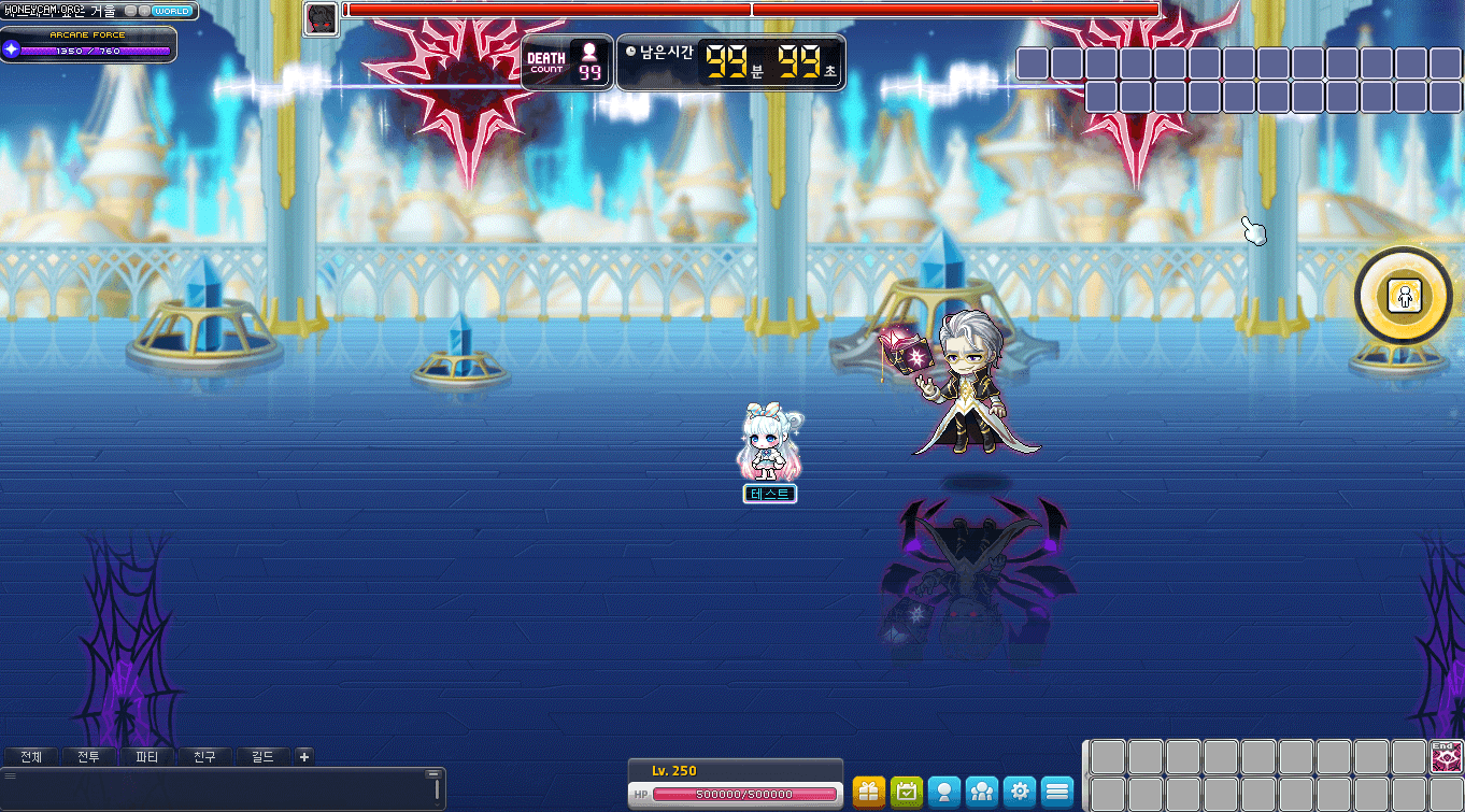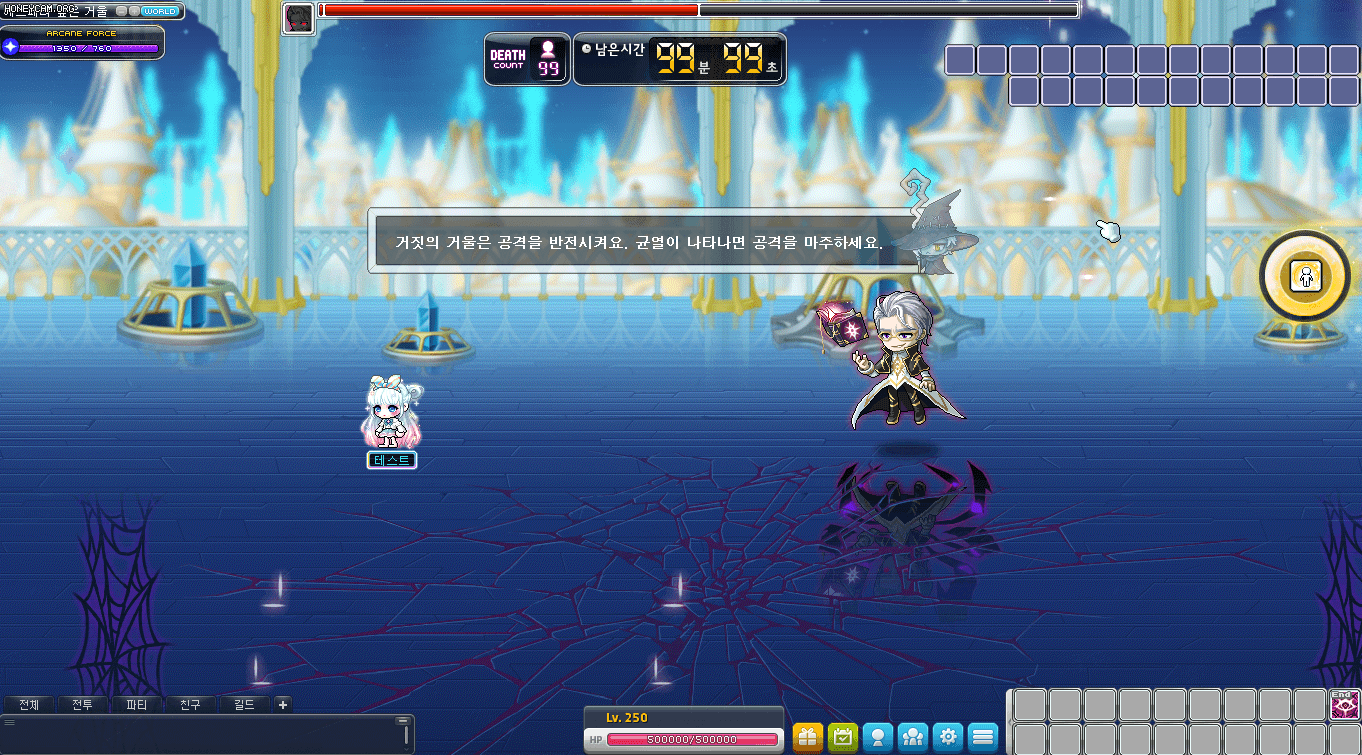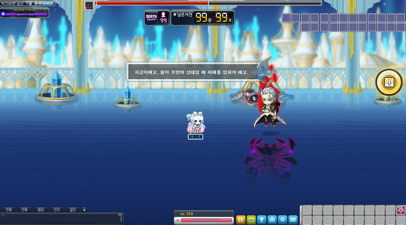 <파훼 성공(그로기)> 파훼 패턴 끝나고, 바로 일반 패턴 넘어가는건 좀 그런거 같아서 집어 넣어봤습니다. 반응이 좋으면 텔레포트나 글라이딩 더블점프나 윌 밀격 패턴등 추가해보겠습니다. 본 프로그램은 게임메이커(Game Maker 8.0 Pro)로 제작되었음을 알려드립니다.