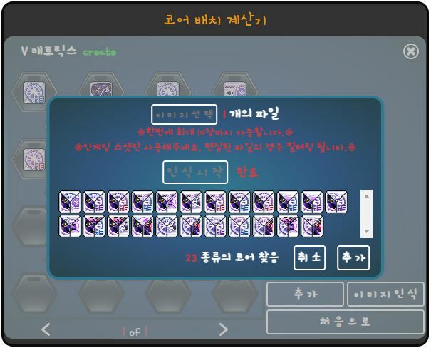 만들어논 프로그램도 관리해야하고 이번에 라라 업데이트하면서 내부적으로 좀 뜯어고치다가 멘탈도 털리고 정신이 없넜네요. 우선 큰 수정사항은 1. 라라 업데이트 2. 계산 로직 변경 -> 자바스크립트로 구현가능한 수준에서 최대한 다중 계산을 동시에 하게끔 변경하였습니다. 3. 정상적으로 인게임의 스샷기능이아닌 프린트스크린(現 alt+프린트스크린?!) 으로 스샷찍고 잘라서 쓰시는분들이 계셔서 인게임에서 제공하는 스크린샷의 사이즈가 아닌 이미지는 애초에 추가 할수 없게 하였습니다. (오류 방지 목적이니 양해해주세요.) 4. 이미지 로직 변경 -> GPU 메이플보다 많이 갈굽니다 몇초수준이긴하지만. 이전버전이 코어이미지목록 만드는데 7~8초, 이미지 1장 매칭하는데 15초 정도 걸렸는데 요번에는 GPU사용율 이전버전보다 약 1.2배정도 사용하면서 코어이미지 목록 만드는데 4초, 이미지 1장 매칭하는데 6~7초 정도 걸립니다. 강화 가능 스킬 10개 캐릭 기준입니다. 조합 코어수 720개 (ex 히어로 등등) 5. WebGL2,하드웨어 가속을 사전에 감지하여 둘중 하나라도 안따라준다면 이미지 인식을 못쓰게 막았습니다. 안된다고 머라고 하시는분들이 많아 안내문과 함께 막았습니다. WebGL2 는 최신 브라우저 라면 어지간해서는 가능할거고, 하드웨어 가속은 유투브 보시는 분들이면 당연 켜두실거라 생각합니다.(유투브의 vp9 코덱가속이 하드웨어 가속기능입니다.) 5.제보 들어온 부분에 한해서 캐릭별 스킬 변경 부분 처리 완료하였습니다. 이부분은 제가 메생사는것도 아니고, 44개의 캐릭터를 다 돌볼수없으므로 제보에 한해서 그때그때 변경해 드리겠습니다. ui가 조금 변했지만 이전과 사용법은 크게 다르지 않습니다. 이미지 인식 부분 입니다. 사용할수 없다면 아래와 같은 문구 or 다른 이유를 알려줍니다. ![]() 사용가능 하다면 이전 버전과 마찬가지로 ![]() 사용하시면 됩니다. 계산기 부분입니다. 성능 최적화를 위해 결과 창은 따로 빼버렸습니다. ![]() 계산중에도 결과가 나왔다면 결과보기 버튼을 통해 볼수있습니다. (결과 보기를 하게되면 계산 프로세스가 일시중지됩니다. 돌아와서 계속 진행할수있습니다.) 결과 창입니다. 이전버전과 동일한 ui를 사용하였습니다. ![]() 링크 라라 업데이트에 마춰서 업데이트 하려고했지만. 상황이 안따라줘서 6일이나 늦었네요. 기다리신 선생님들께는 죄송합니다...ㅎ 그래서 라라는 재밌나요? 게임 못켠지 한달대써요 ㅠㅠ