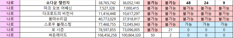 하이퍼 스킬은 사냥:보스 = 10:0 으로 잡았기에 보스기 강화는 후순위로 밀렸습니다. ----------------------------------------------------------- 첫 타격 시 직업별 중간 결산 스펙