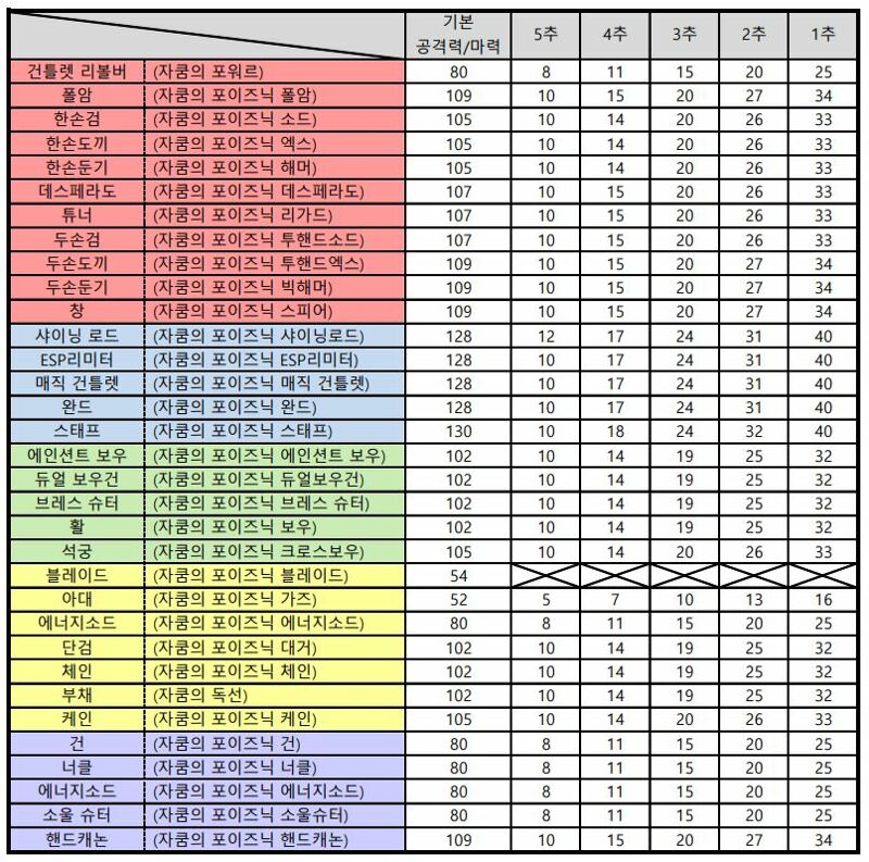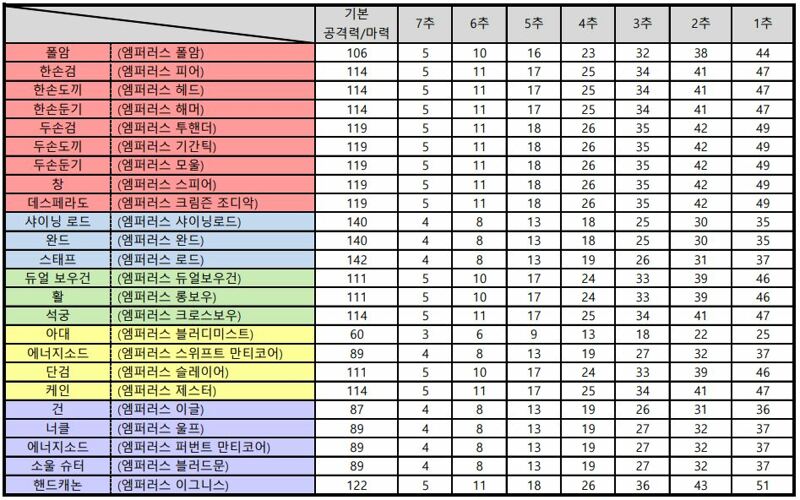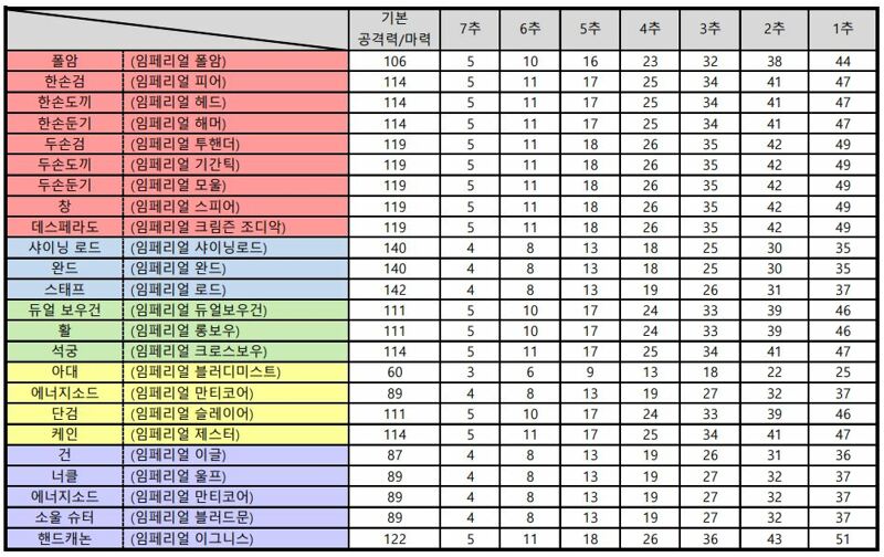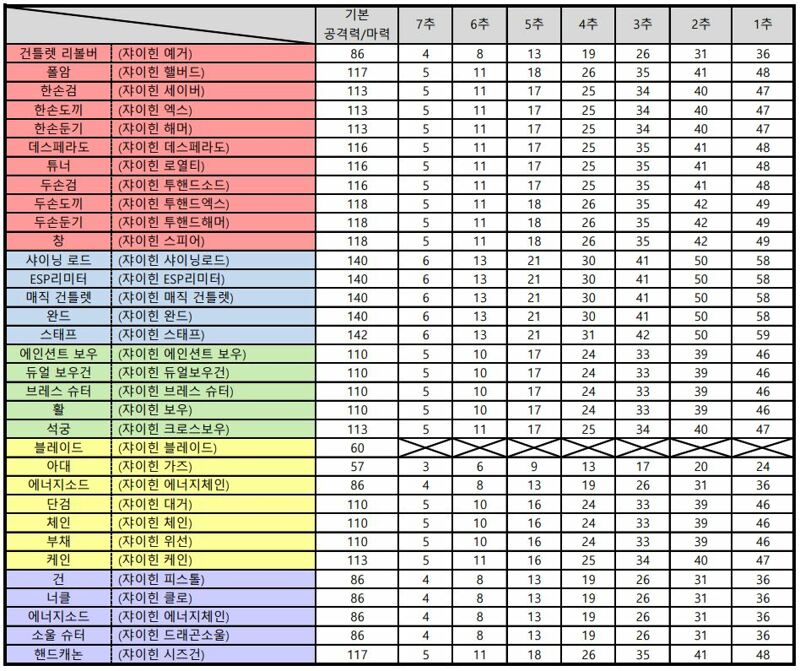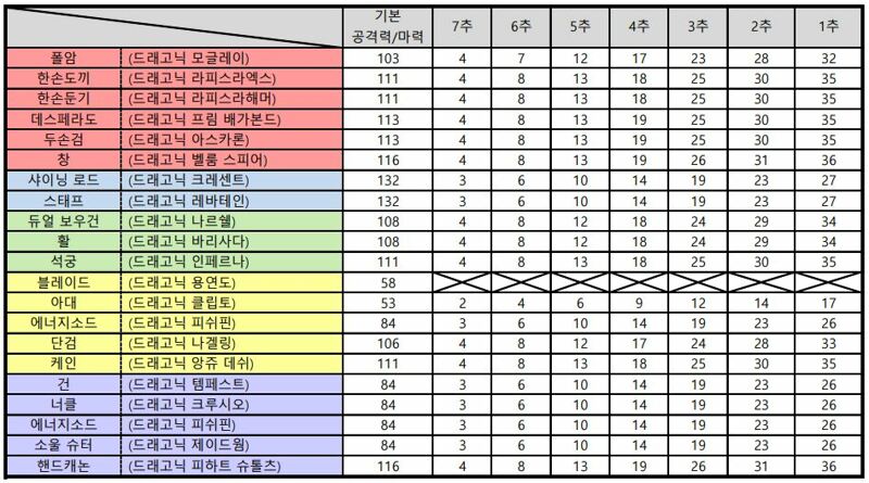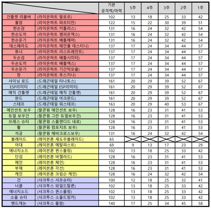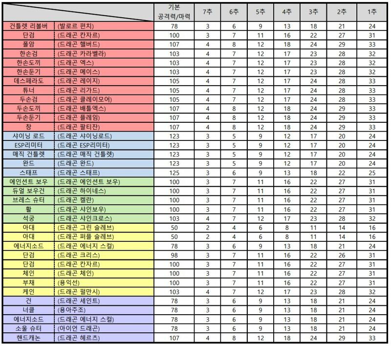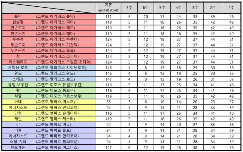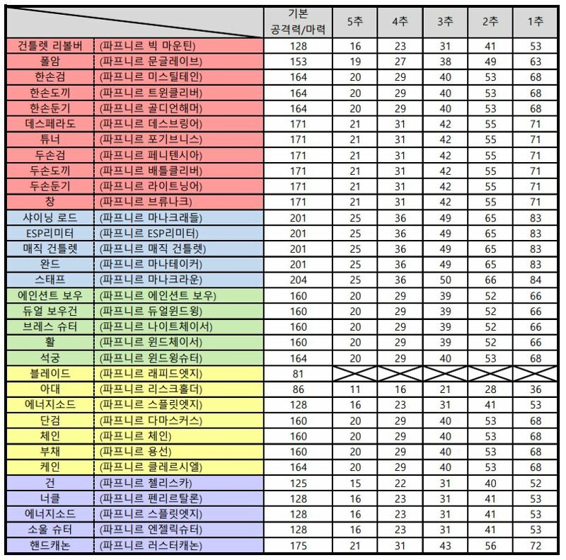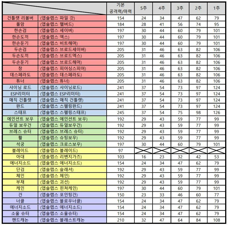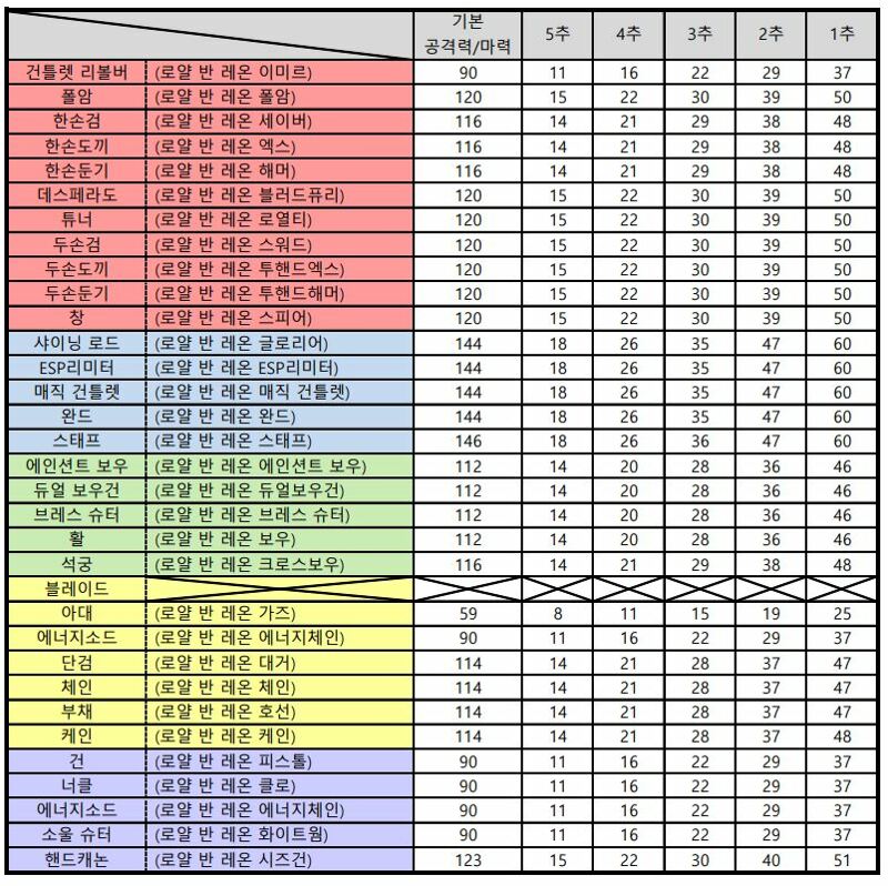 110 ~ 160 무기 추옵표110 ~ 160 무기 추옵표 Lv.110 드래곤 @@@ Lv.110 드래고닉 @@@ Lv.110 자쿰 Lv.120 브히제르 Lv.120 네크로 Lv.120 리버스, 타임리스 Lv.120 어비스, 피어리스 Lv.125 @@ 반 레온 Lv.130 [대난투] 아가레스(전사), 엘리고스(마법사), 이포스(궁수), 핼파스(도적), 베파르(해적) Lv.130 [대난투-그랜드] 그랜드 아가레스, 그랜드 엘리고스, 그랜드 이포스, 그랜드 핼파스, 그랜드 베파르 Lv.130 [아스완] 엠퍼러스 Lv.130 [아스완] 임페리얼 Lv.130 쟈이힌 Lv.130 로얄 반 레온 Lv.140 우트가르드 Lv.140 여제 Lv.145 마이스터 Lv.150 파프니르 Lv.160 앱솔랩스 Lv.110 드래곤 @@@ ![]() Lv.110 드래고닉 @@@ ![]() Lv.110 자쿰 ![]() Lv.120 브히제르 ![]() Lv.120 네크로 ![]() Lv.120 리버스, 타임리스 ![]() Lv.120 어비스, 피어리스 ![]() Lv.125 @@ 반 레온 ![]() Lv.130 [대난투] 아가레스 (전사), 엘리고스 (마법사), 이포스 (궁수), 핼파스 (도적), 베파르 (해적) ![]() Lv.130 [대난투-그랜드] 그랜드 아가레스 (전사), 그랜드 엘리고스 (마법사), 그랜드 이포스 (궁수), 그랜드 핼파스 (도적), 그랜드 베파르 (해적) ![]() Lv.130 [아스완] 엠퍼러스 ![]() Lv.130 [아스완] 임페리얼 ![]() Lv.130 쟈이힌 ![]() Lv.130 로얄 반 레온 ![]() Lv.140 우트가르드 ![]() Lv.140 여제 ![]() Lv.145 마이스터 ![]() Lv.150 파프니르 ![]() Lv.160 앱솔 ![]()