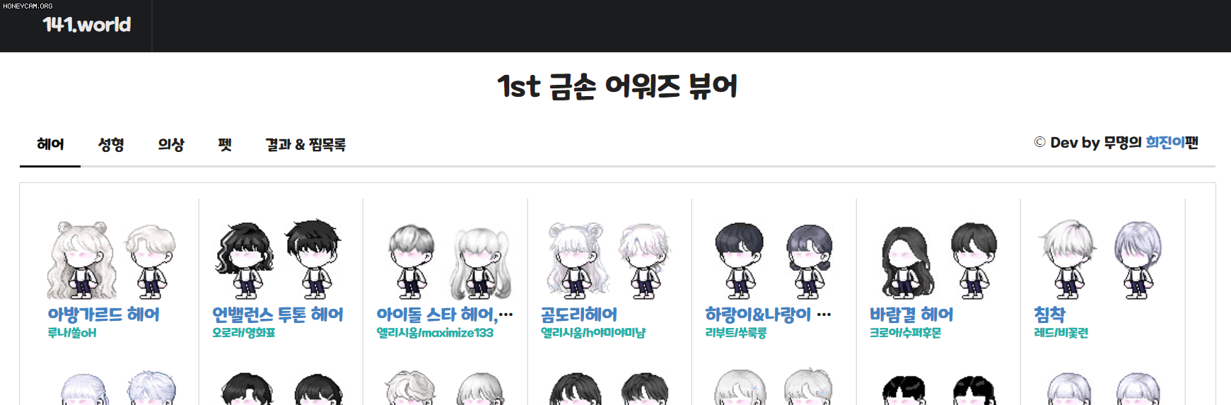 금손어워즈 뷰어![]() 보기 너무 불편해서.. 한 눈에 볼 수 있도록 만들었습니다! 순서는 완전 랜덤이며 새로고침할 때마다 바뀌어요 반응형으로 만들었긴한데 모바일은 테스트 안해봄.. PC 추천합니다