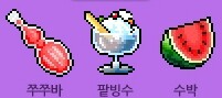 이런 소비아이템도 나옵니다. 쭈쭈바는 HP2000,팥빙수는 MP2000,수박은 HP,MP각각 1000씩올려줍니다.