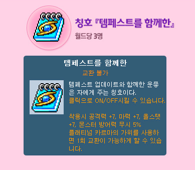 7월 3일 발표된 '메이플 클럽 헤네시스'의 레전드리 등급으로 선정되면 지급하는 칭호 입니다. 효과는 공격력/마력 +3, 올스탯 +7, HP/MP +500, 방어율 무시 +5%입니다.