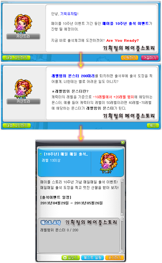 메이플스토리 10주년 출석체크 이벤트가 진행됩니다.