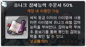 누적 21일차는 유니크 잠재능력 주문서 50%를 얻을 수 있습니다.