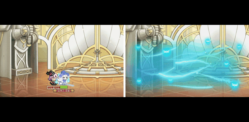 오히려 작업 시간을 단축시키고자 했으면, 삭제될 기존 아란의 스킬에 보이는 폴암 이펙트를 활용하든지 했으면 적은 노력으로 더 나은 퀄리티를 낼 수 있었을 것이라고 생각됩니다.